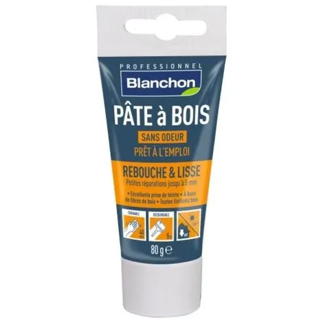 Masticà bois prêt à l’emploi destiné au rebouchage de petites réparations.