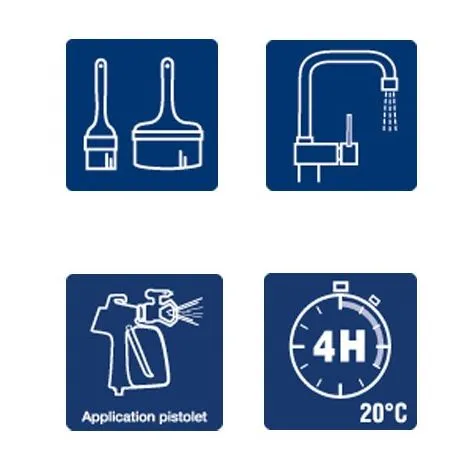 Sec en 4 h (à 20°C), nettoyage du matériel à l’eau.